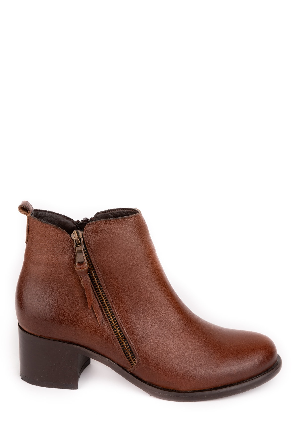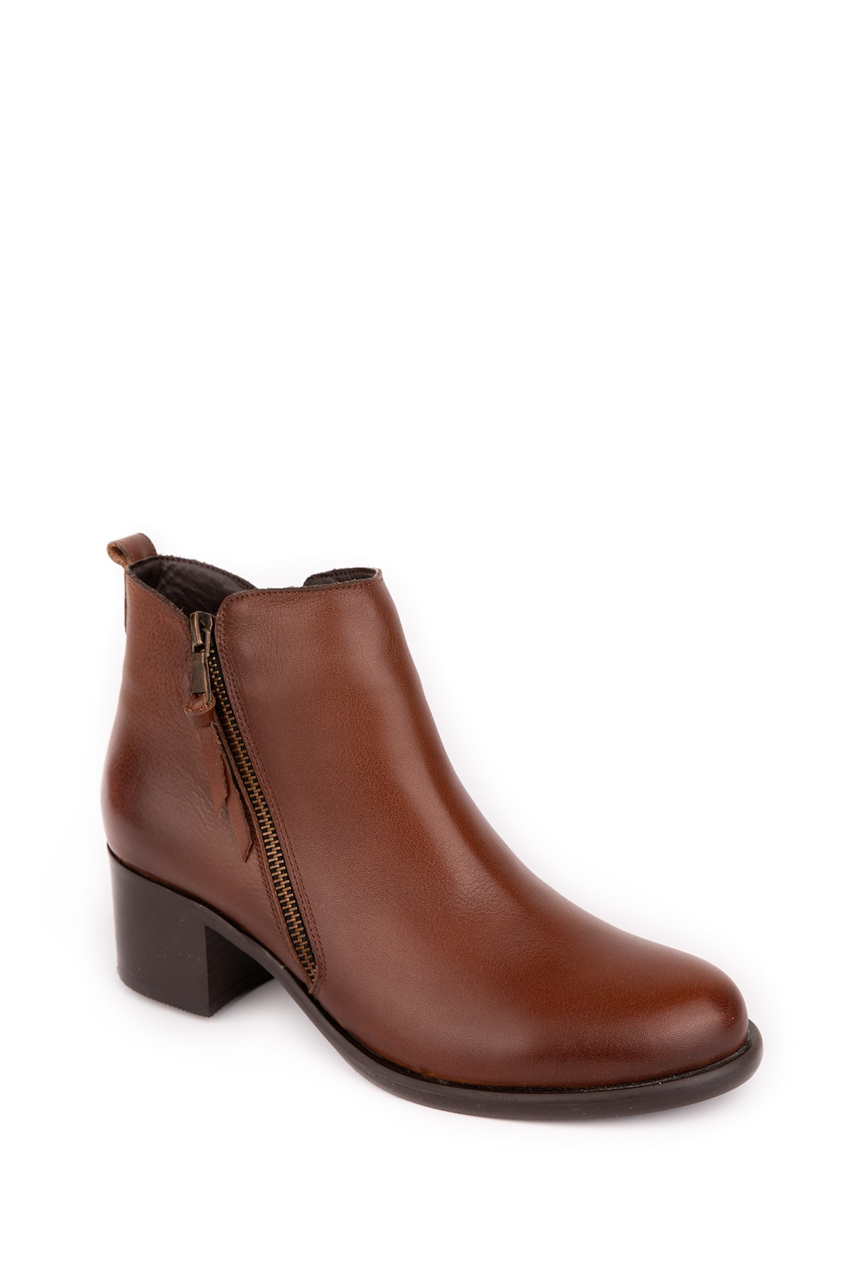 Türkiye'de üretilmiştir.; 36-44 Numara; Hakiki Deri; 5 Cm.Topuk Boyu; Hakiki deriden, çift fermuarlı olarak üretilen botun, fermuarında ki deri püskül detayı, botun görüntüsüne hoş bir asilik katar.; Kısa konç boyu ile yürürken ayak bileğinin rahat etmesini sağlar.; Elde üretilen topuğu ile yere sağlam bastırır ve denge problemi yaşatmaz.; Bakımı; Hakiki deri botların yumuşak bir bez ya da ayakkabı süngeri ile temizlenmesi tavsiye edilir.; Belli dönemlerde ayakkabı boyası ile boyanması derinin ömrünü uzatacaktır.; Uzun yıllar kullanacağınız botu, sezon sonunda içini destekleyerek saklamanız tavsiye edilir.; Islanan botun kendi halinde kurumaya bırakılması, derinin sertleşmemesi açısından önemlidir. Kalıplarımız tam numara ve rahattır.; Kendi numaranızı alınız.; Üretici firma olarak her ürün siparişe özel üretilir, ilk giyen siz olursunuz ve ayağınızın taraklı veya kemik çıkıntısı gibi bir durumu varsa bize sipariş numaranız ile belirtiniz. ;