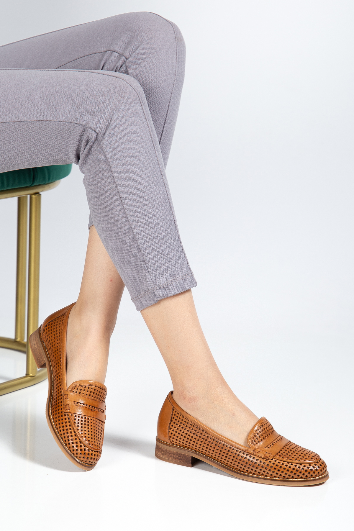 Hakiki Deri 33-34-35-36-37-38-39-40-41-42-43-44-45 Numara Lazer Kesim Delikli Kadın Ayakkabı Taba