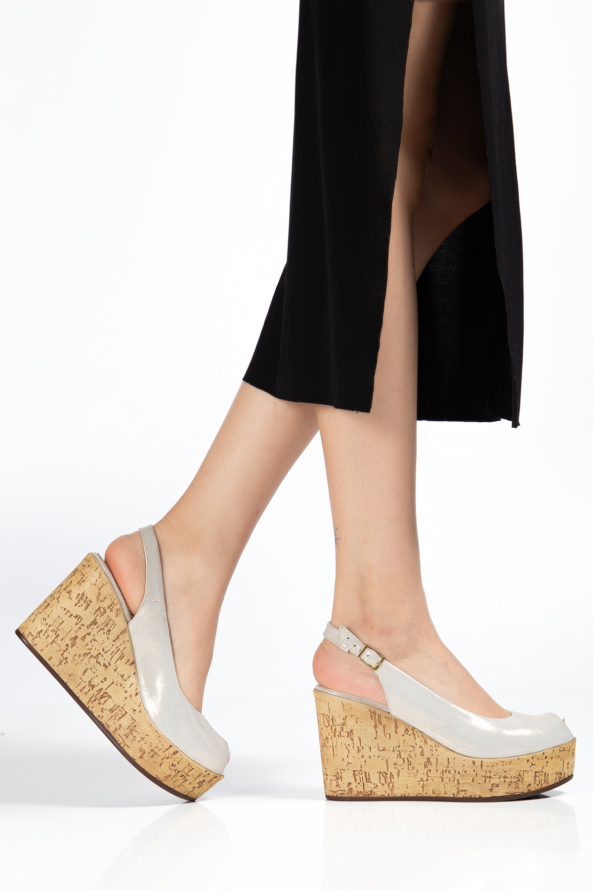 Hakiki Deri 34-35-36-37-38-39-40 Numara Doğal Mantar Görünümlü Kadın Sandalet Beyaz Sim