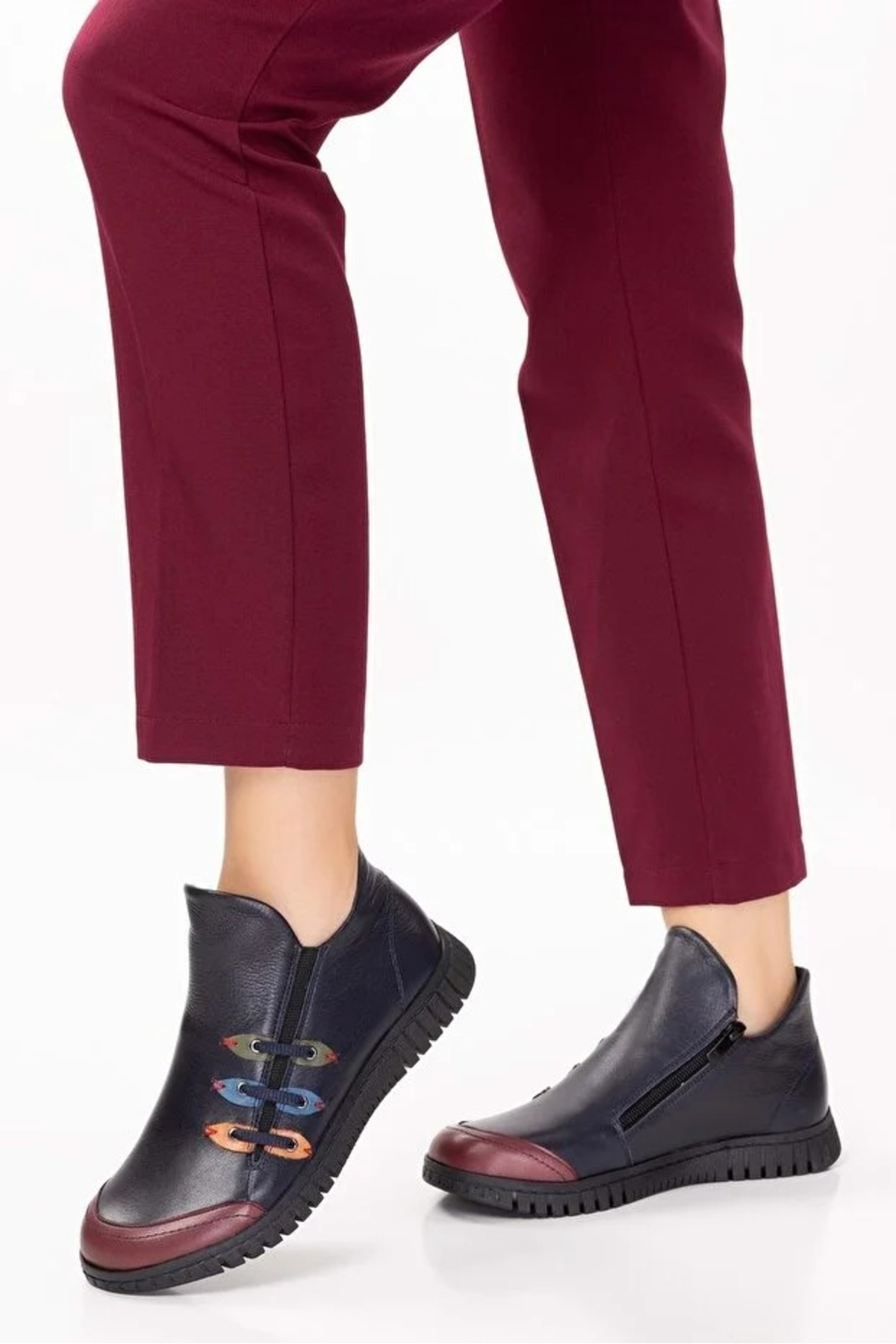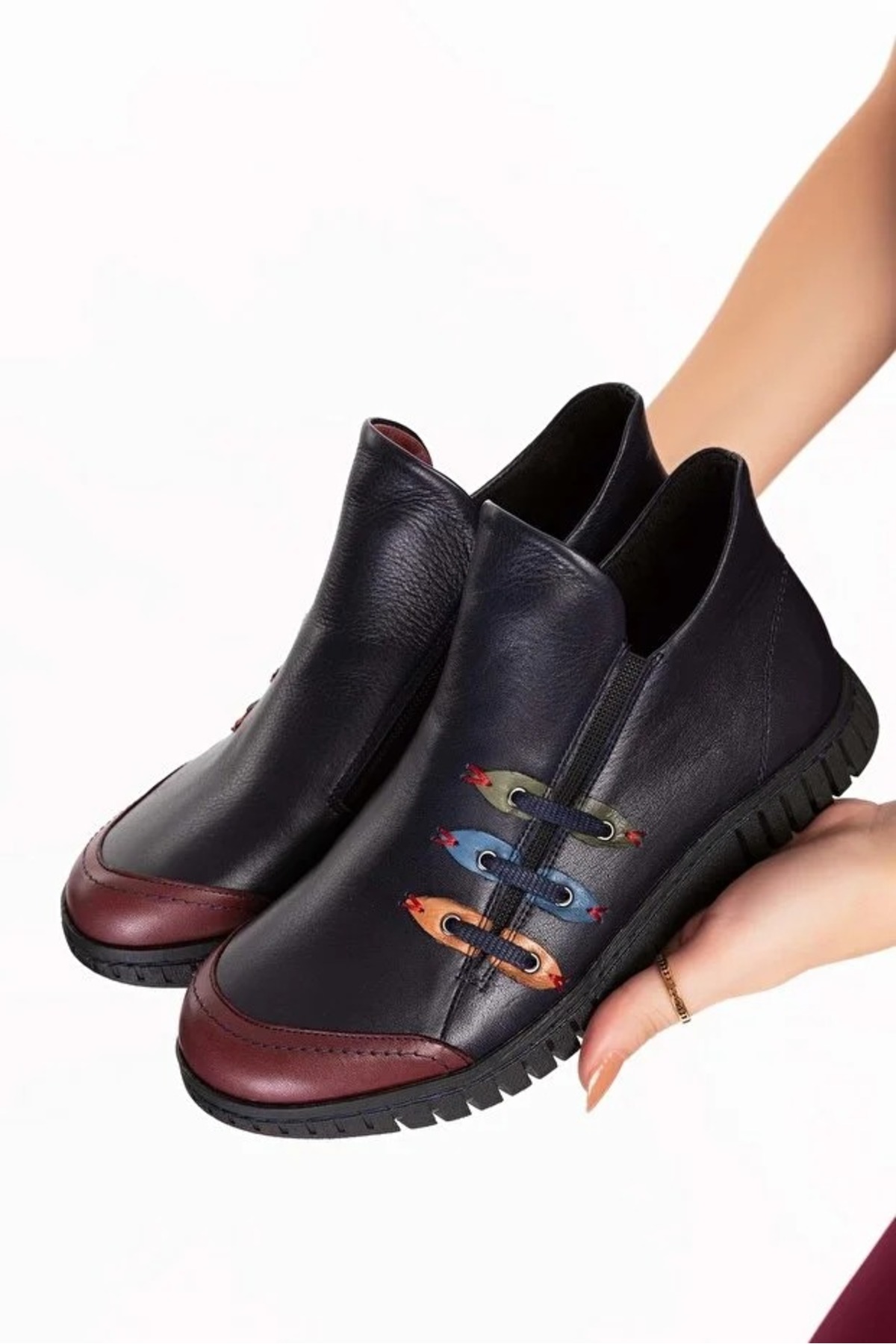 - Günlük kullanım için ideal, rahat ve şık tasarımıyla dikkat çeken bot.; - Yüksek kaliteli hakiki deri dış materyal ile uzun ömürlü ve dayanıklı kullanım sunar.; - Cool ve konforlu bir görünüm sağlayan modern tasarımıyla her ortamda rahatlık sağlar.; - Termoplastik taban materyali sayesinde esnek ve kaymaz adımlar atmanızı destekler.; - Yuvarlak burun tipi ile ayak parmaklarınızın rahat hareket etmesine olanak tanır.; - Kış aylarında sıcak tutan iç taban materyali, soğuk havalarda konforlu bir deneyim sunar.; - Fermuarlı bağlama şekli pratik giyip çıkarmayı kolaylaştırırken, ayakkabının ayağınıza tam oturmasını sağlar.; - Tekstil astar materyali ile nefes alabilirlik ve konforlu bir iç yapı sunar.; - Kadın ve kızlar için özel olarak tasarlanmış, şık ve modern bir görünüm kazandırır.; - Türkiye'de üretilmiş olmasıyla yerel üretim desteklenmiş olurken, kalite standartlarına uygun olarak üretilmiştir.; - Renkli deseniyle stil sahibi görünümün yanında canlılık katmak için idealdir.; - Kısa topuklu (1 - 4 cm) tasarım