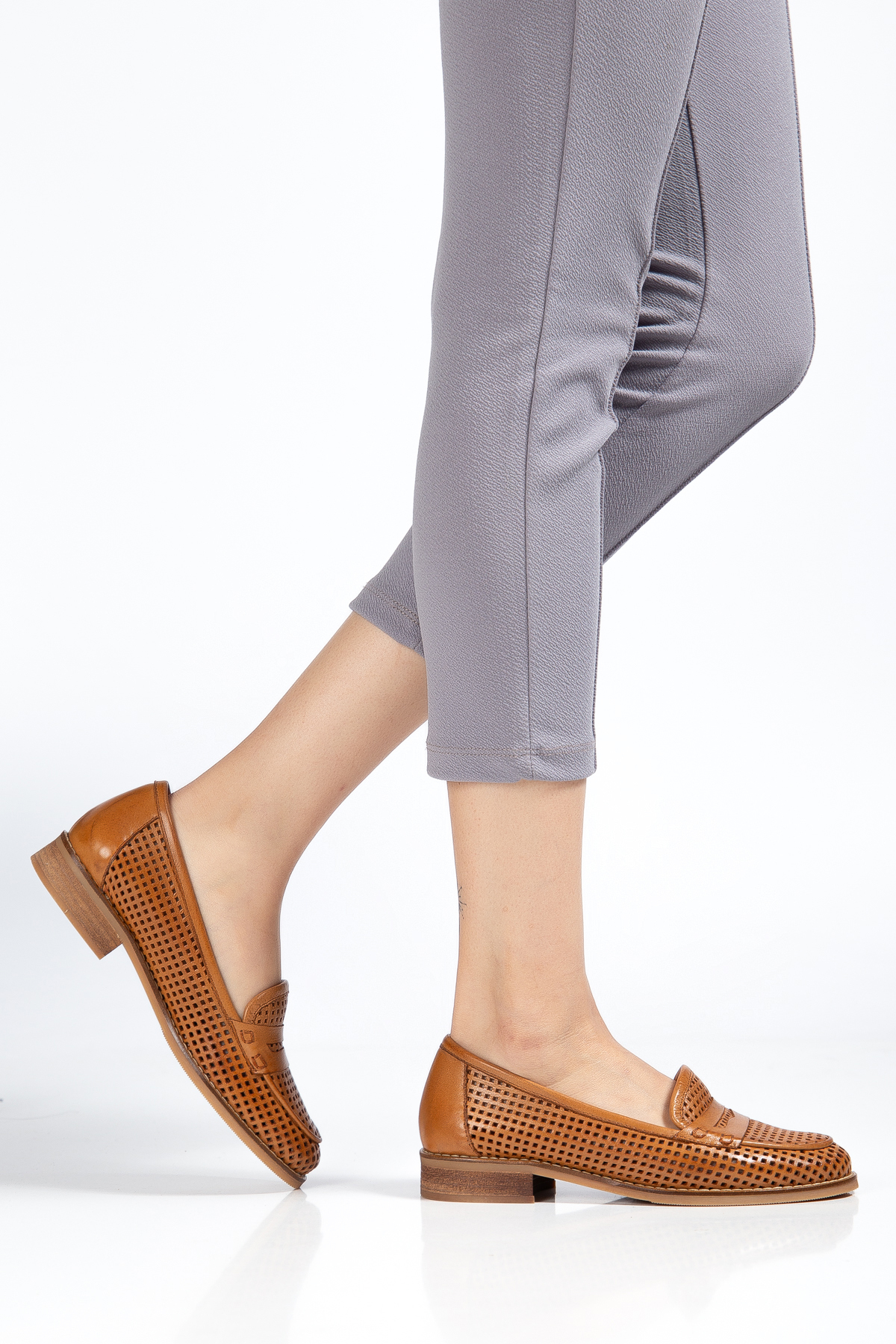 Hakiki Deri 33-34-35-36-37-38-39-40-41-42-43-44-45 Numara Lazer Kesim Delikli Kadın Ayakkabı Taba