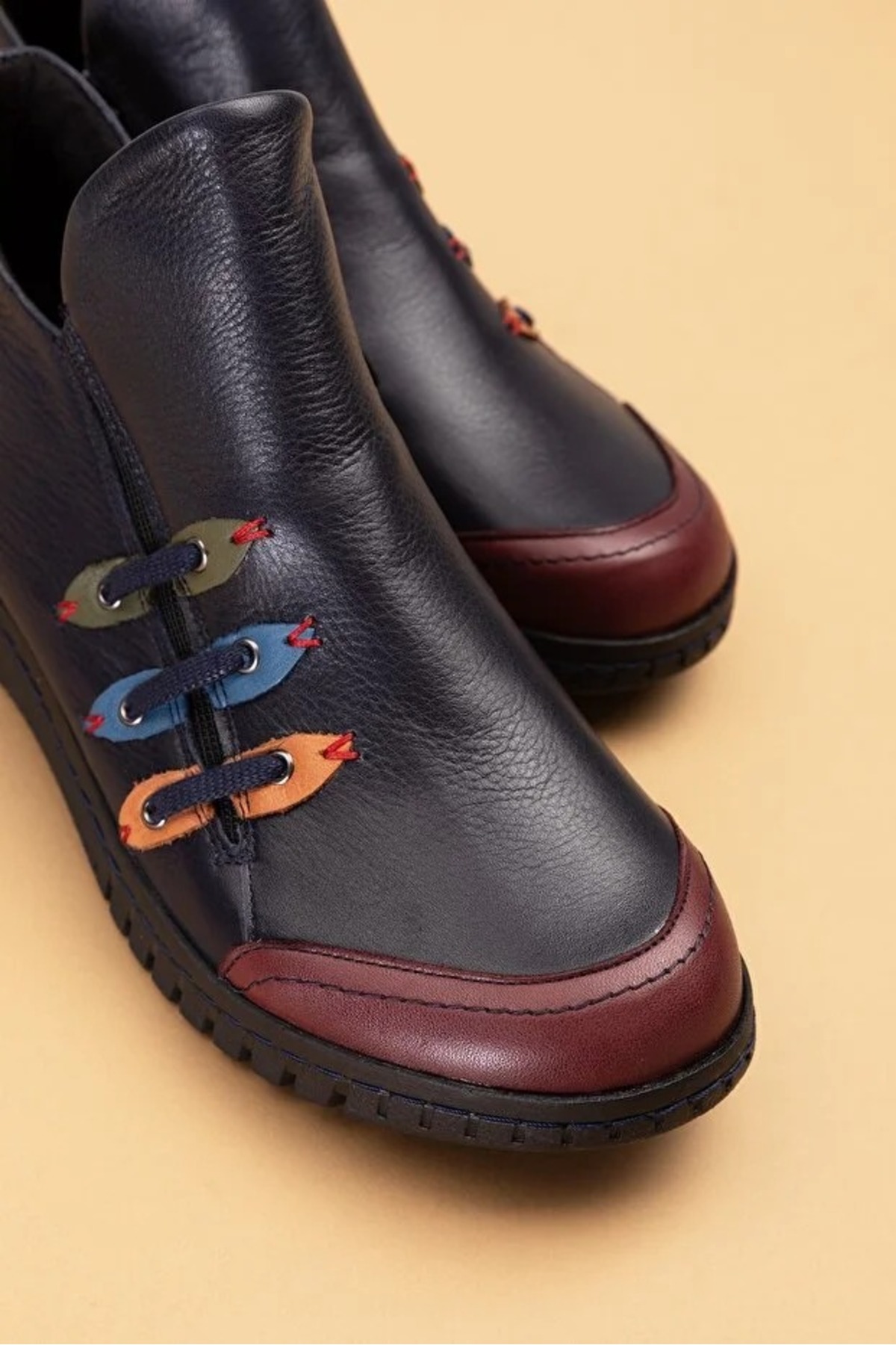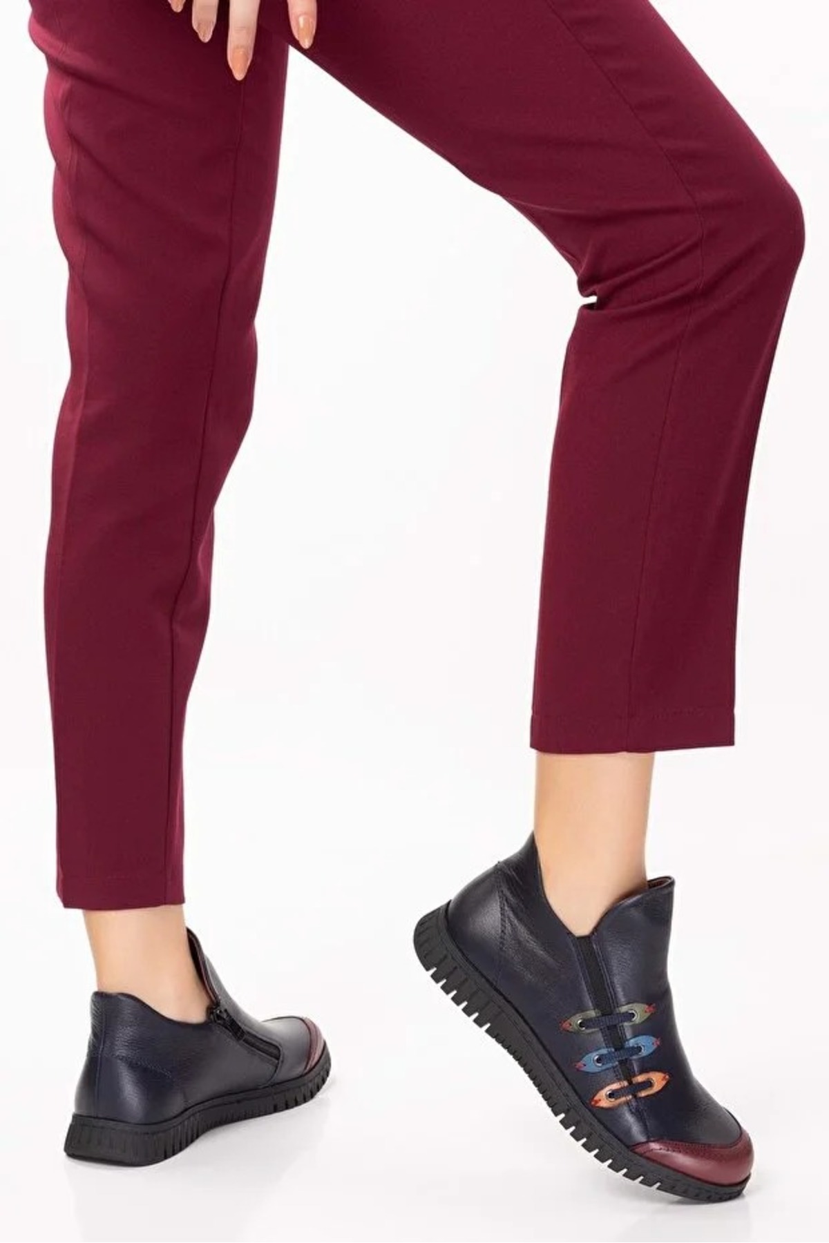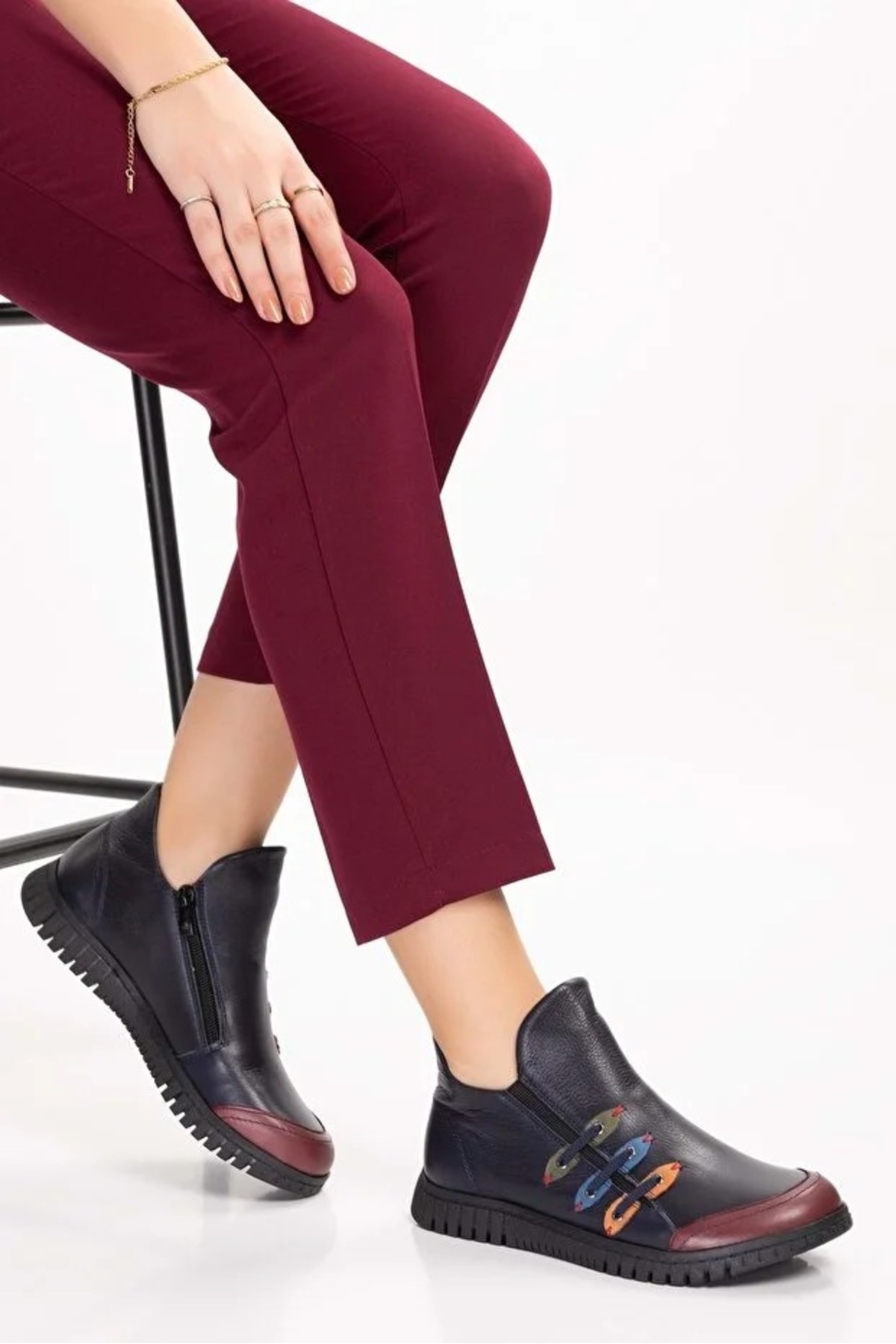 - Günlük kullanım için ideal, rahat ve şık tasarımıyla dikkat çeken bot.; - Yüksek kaliteli hakiki deri dış materyal ile uzun ömürlü ve dayanıklı kullanım sunar.; - Cool ve konforlu bir görünüm sağlayan modern tasarımıyla her ortamda rahatlık sağlar.; - Termoplastik taban materyali sayesinde esnek ve kaymaz adımlar atmanızı destekler.; - Yuvarlak burun tipi ile ayak parmaklarınızın rahat hareket etmesine olanak tanır.; - Kış aylarında sıcak tutan iç taban materyali, soğuk havalarda konforlu bir deneyim sunar.; - Fermuarlı bağlama şekli pratik giyip çıkarmayı kolaylaştırırken, ayakkabının ayağınıza tam oturmasını sağlar.; - Tekstil astar materyali ile nefes alabilirlik ve konforlu bir iç yapı sunar.; - Kadın ve kızlar için özel olarak tasarlanmış, şık ve modern bir görünüm kazandırır.; - Türkiye'de üretilmiş olmasıyla yerel üretim desteklenmiş olurken, kalite standartlarına uygun olarak üretilmiştir.; - Renkli deseniyle stil sahibi görünümün yanında canlılık katmak için idealdir.; - Kısa topuklu (1 - 4 cm) tasarım